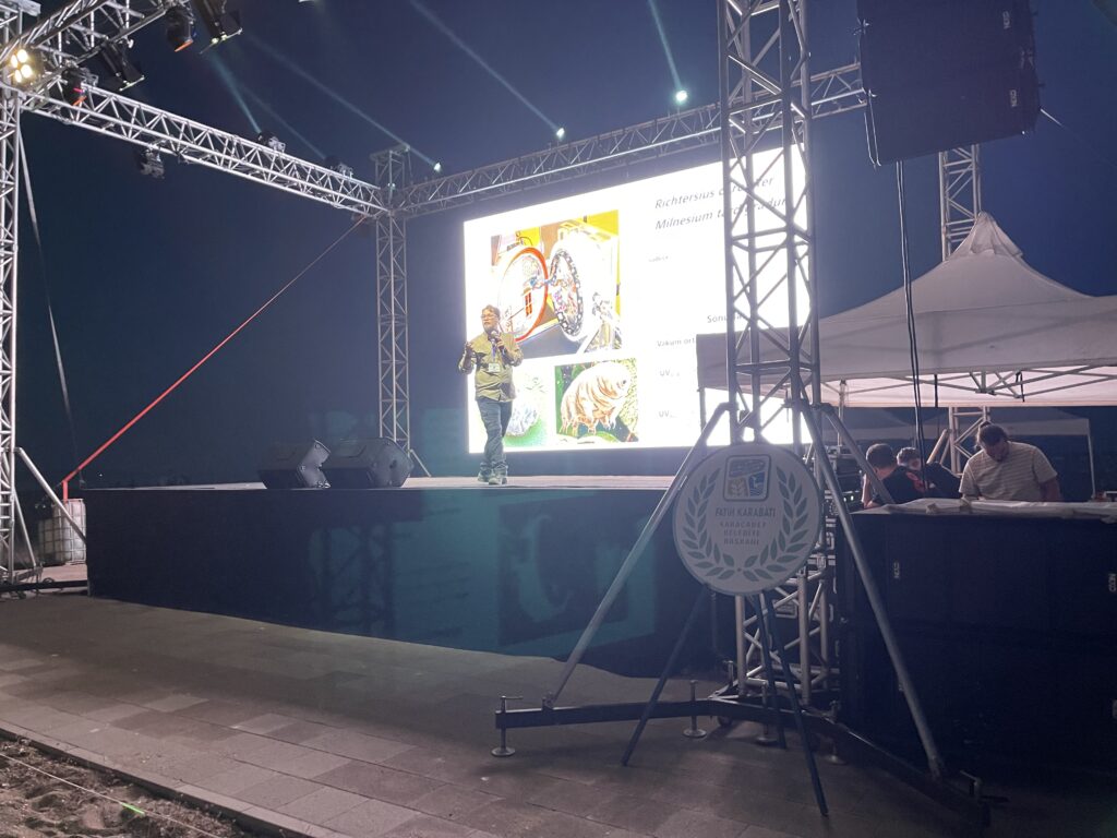 03.08.2024 tarihinde 5. Perseid Meteor Yağmuru Gözlem Etkinliği kapsamında, Bursa Karacabey Longoz Ormanı’nda yaklaşık 20 bin kişiye tardigradlar üzerine bir anlatım gerçekleştirdim. Sunumda, bu mikroskobik canlıların morfolojik özelliklerini, ekstrem çevre koşullarına karşı geliştirdikleri kriptobiyoz yeteneklerini ve ekosistemlerdeki rollerini anlattım. Ayrıca, uzay araştırmalarında model organizma olarak kullanılmaları ve astrobiyoloji alanındaki bilimsel önemi üzerine örnekler paylaştım.