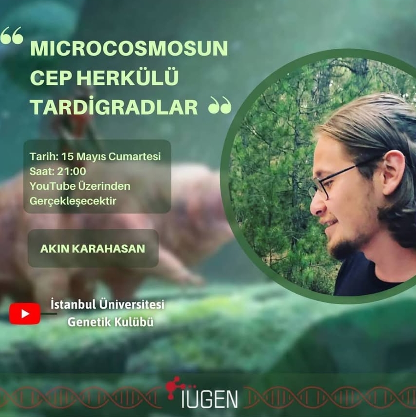 15.05.2021 tarihinde İstanbul Üniversitesi Genetik Topluluğu tarafından düzenlenen çevrim içi etkinlikte, tardigradlar üzerine bir sunum gerçekleştirdim. Konuşmada, bu mikroskobik canlıların morfolojik ve fizyolojik özelliklerini, ekstrem çevre koşullarına uyum sağlayan kriptobiyoz mekanizmalarını ve farklı habitatlardaki ekolojik rollerini anlattım. Ayrıca, uzay ortamında yapılan deneylerden elde edilen bulgular ışığında, tardigradların astrobiyoloji araştırmalarındaki önemini katılımcılarla paylaştım.