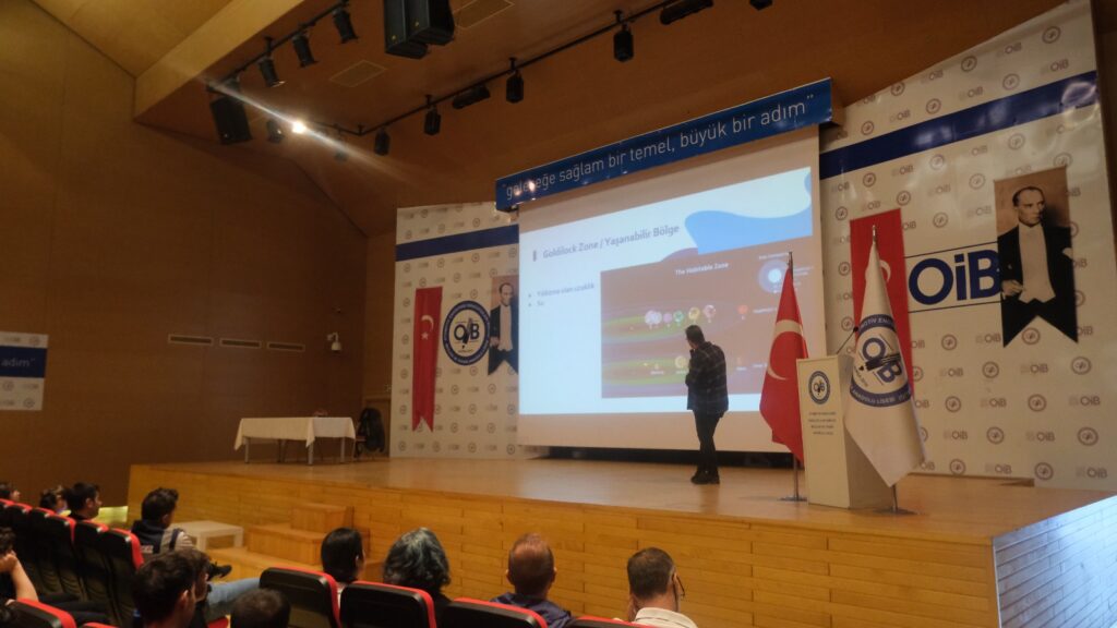 15.12.2022 ve 02.10.2024 tarihinde Otomotiv Endüstrisi İhracatçıları Birliği Mesleki ve Teknik Anadolu Lisesi öğrencilerine yönelik olarak,. Astrobiyoloji başlıklı bir seminer verdim. Sunumda, “evrende yaşam” sorusunun bilimsel temellerini ele .alarak, yaşanabilir bölgeler, ötegezegen araştırmaları, Dünya dışı yaşam arayışında kullanılan yöntemler ve Güneş Sistemi’ndeki potansiyel yaşam alanlarını anlattım. Ayrıca, astrobiyolojinin çok disiplinli yapısına değinerek biyoloji, kimya, astronomi ve mühendislik gibi alanların bu araştırmalara nasıl katkı sağladığını örneklerle aktardım.